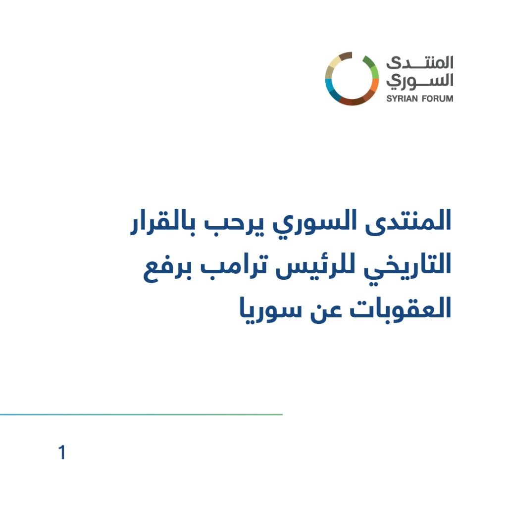 المنتدى السوري يرحب بالقرار التاريخي للرئيس ترامب برفع العقوبات عن سوريا.