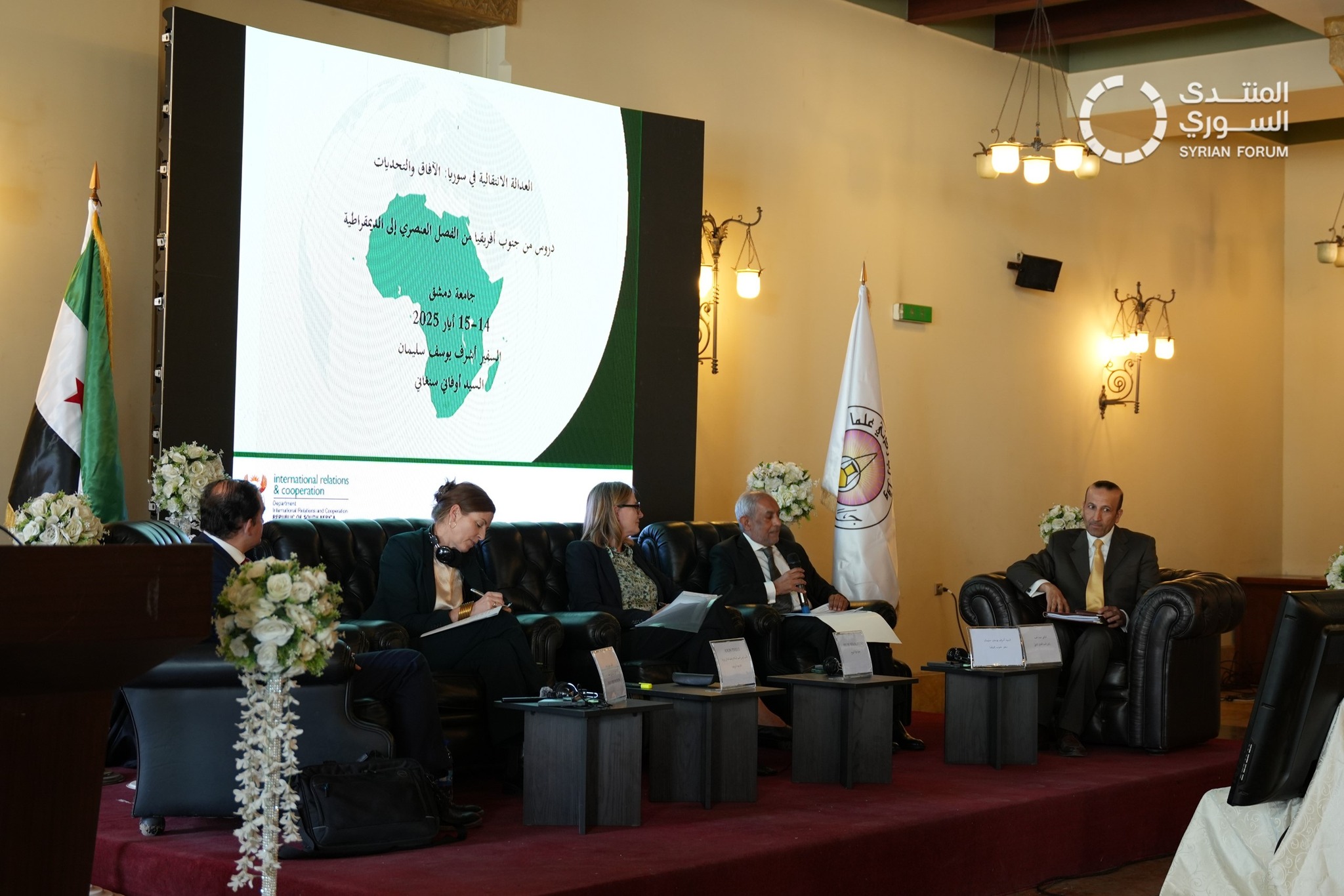 “العدالة الانتقالية في سوريا: الآفاق والتحديات”، وتستمر الورشة على مدى يومين، برعاية من المنتدى السوري ومركز الحوار السوري ومؤسسة promediation، وبمشاركة نخبة من الشخصيات الرسمية والدبلوماسية والأكاديمية.