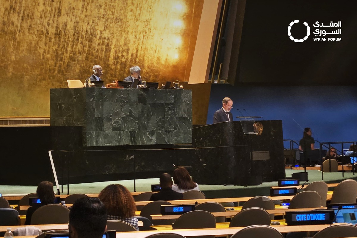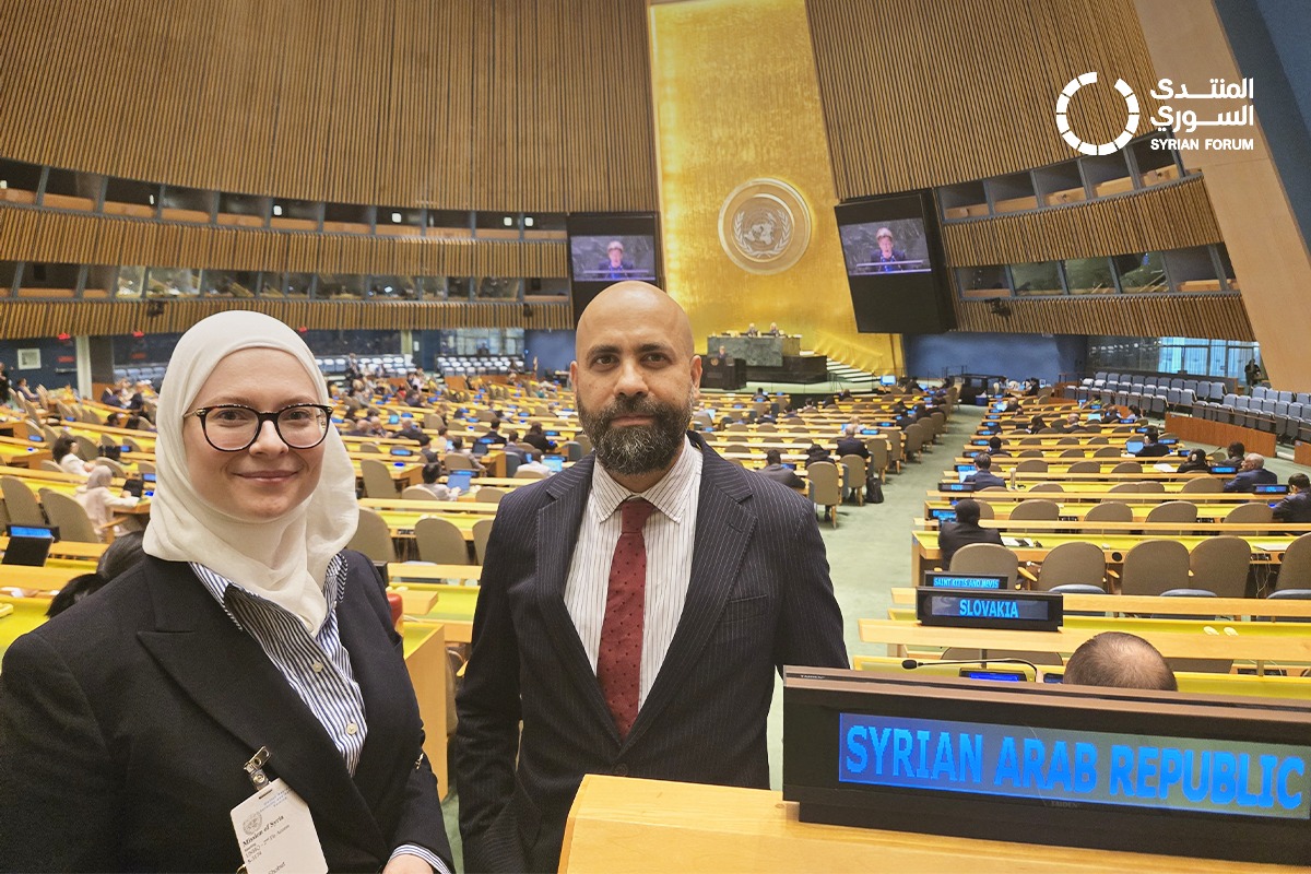 شارك فريق المناصرة في المنتدى السوري، ممثلاً بياسر تبارة وسالي شوبط، في الفعاليات الرسمية التي عقدت في مقر الأمم المتحدة يوم الثلاثاء، والتي شهدت مشاركة وزير الخارجية السوري، السيد أسعد الشيباني.